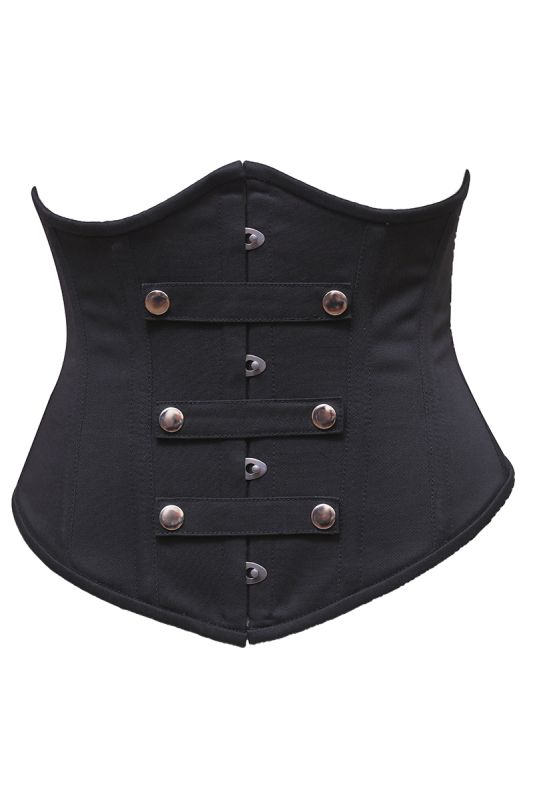Gothic Unterbrust Korsett Commander im sexy Uniform Style mit dominanten Zierriemen und V-förmigen Saum