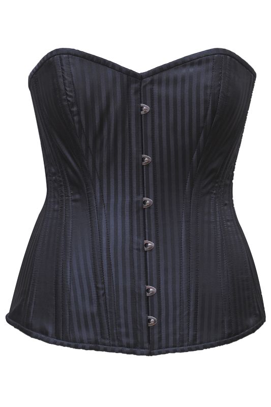 Gothic Vollbrust Korsett Satin Stripes Schwarz