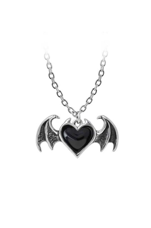 Alchemy England Blacksoul Bijou Halskette mit schwarzem Herzanhänger und Fledermausflügeln
