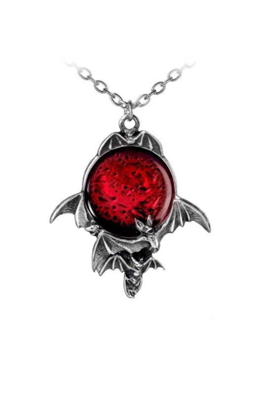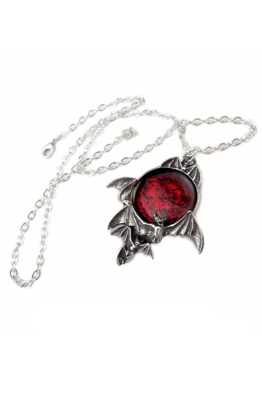Alchemy England Blood Moon Halskette mit rotem Mondanhänger und mystischen Fledermäusen