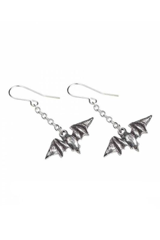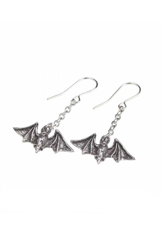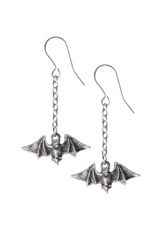 Alchemy England Kiss The Night Ohrringe an kurzer Kette mit fliegenden 3D Fledermäusen