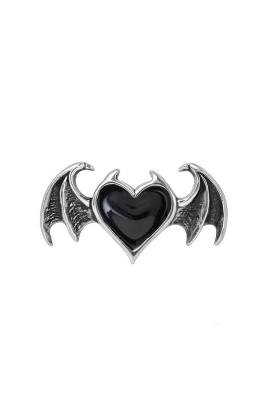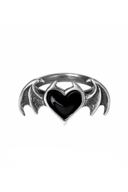 Alchemy England Blacksoul Ring im schwarzen Herzdesign mit Hörnern und Fledermausflügeln