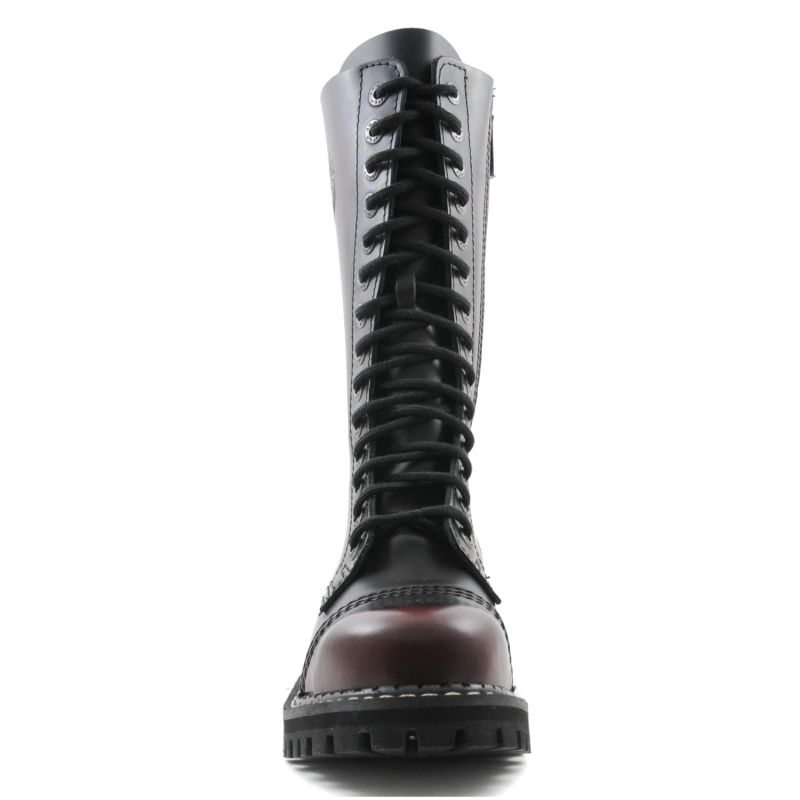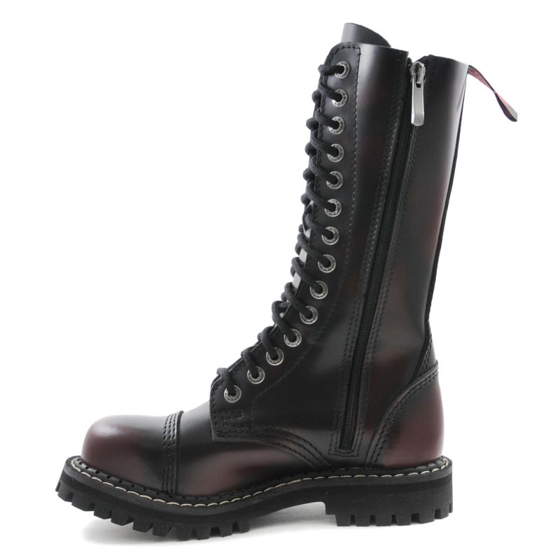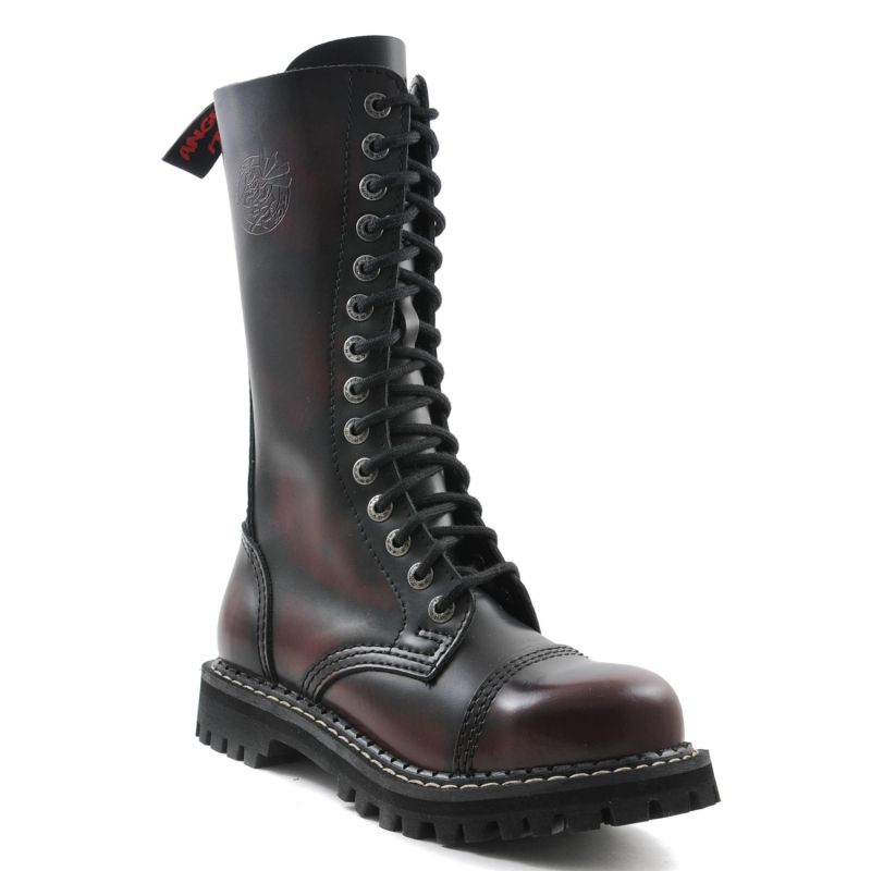 Angry Itch Boots 14 Loch Burgundy Rub Off - Dunkel Rote 14 Loch Gothic Boots im Rub Off Style mit Stahlkappe
