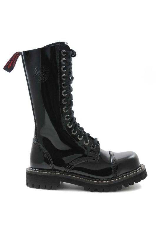Angry Itch Boots 14 Loch Lack - Schwarze 14 Loch Gothic Boots im glänzenden Lack Look mit Stahlkappe