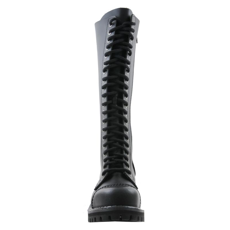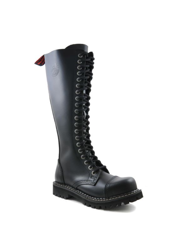 Angry Itch Boots 20 Loch Leder - Schwarze 20 Loch Gothic Stiefel mit Stahlkappe und seitlichem Reißverschluss
