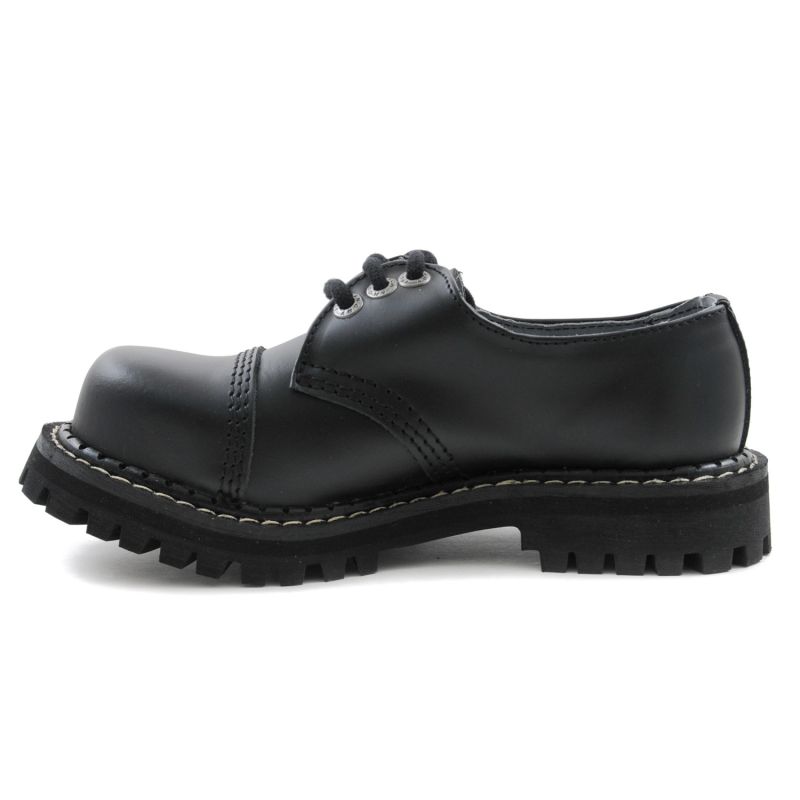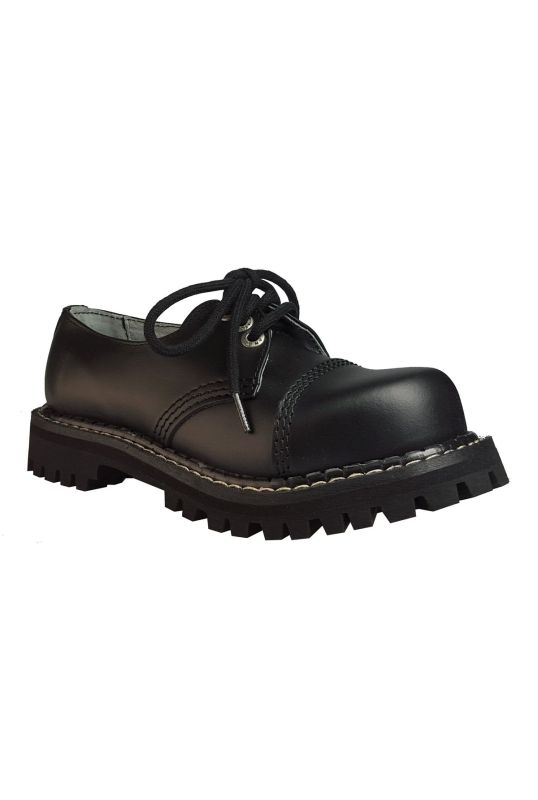 Angry Itch Boots 3 Loch Leder - Schwarze 3 Loch Gothic Boots mit Stahlkappe zum Schnüren