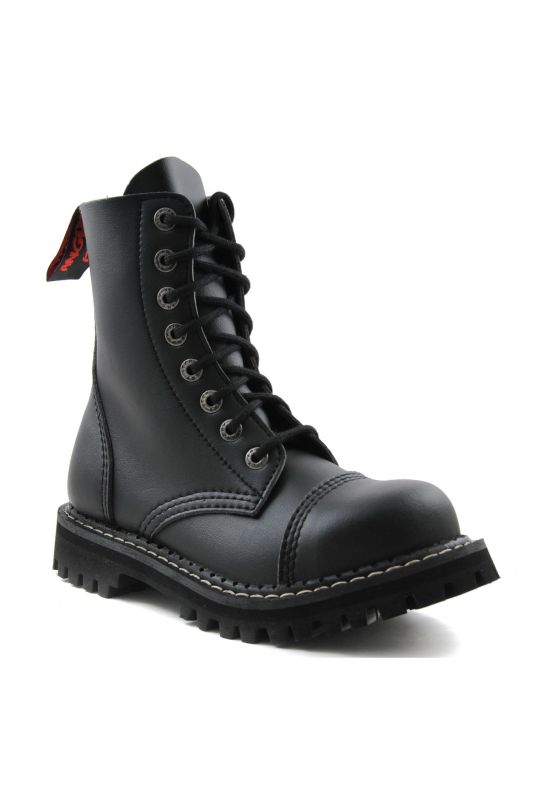 Angry Itch Boots 8 Loch Vegan - Schwarze 8 Loch Gothic Boots Vegan aus hochwertigem Kunstleder mit Stahlkappe