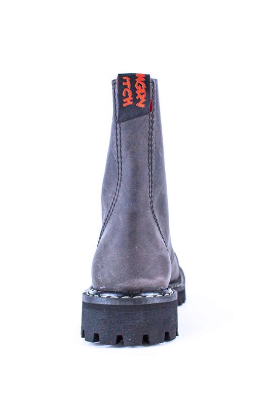 Die perfekten Angry Itch Boots, um deinem Outfit etwas mehr Tiefe zu verleihen. Mach dich zum Blickfang und setzte düstere Akzente, denn das Leben ist zu kurz für langweile Schuhe. Bring mehr Farbe in Spiel, mit den Angry Itch "8 Loch Vintage Dunkel Braun Leder" Boots. Super bequem und mit extravagantem Touch verführen diese Gothic Boots im edlen Wildleder. Es ist ein hochwertiges Vollleder, das sich sehr weich anfühlt. Die robuste Sohle der Angry Itch 8 Loch Stiefel ist mit tiefem Profil ausgestattet. Die Schrauben und weißen Ziernähten an der Sohle sorgen für einen lässigen Kontrast und den typischen Gothic Boots Charakter. Alle Angry Itch Boots und Stiefel werden zu 100% in der EU gefertigt und unter fairen Bedingungen. Das Logo der Marke ist auf dem Schaft der Gothic Stiefel eingeprägt und auf der Lasche eingestickt. Für noch mehr Tragekomfort, ist die umnähte Stahlkappe von innen weich gepolstert. Auch die Innensohle ist weich gepolstert und waschbar. Die Gothic Boots sehen atemberaubend gut aus und sind komplett Unisex. Sie passen zum Minirock, Kleid, Leggings, Jeans und Hotpants genauso, wie zu Kilt, Shorts und Cargo Hose.