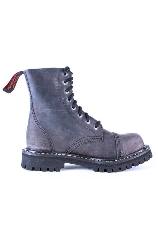 Angry Itch Boots 8 Loch Vintage Leder - Dunkel Braune 8 Loch Gothic Boots im Vintage Look mit Stahlkappe