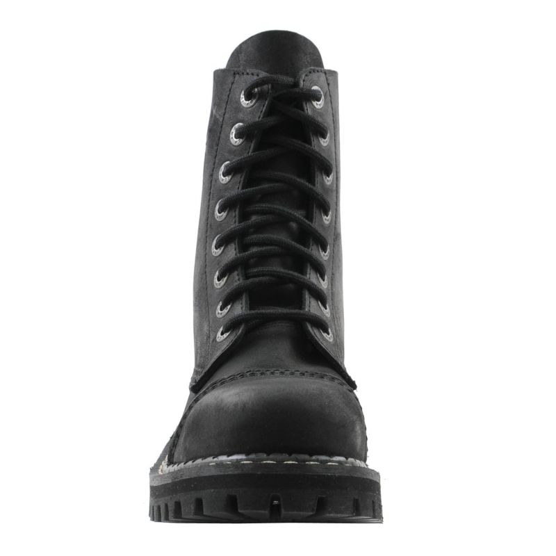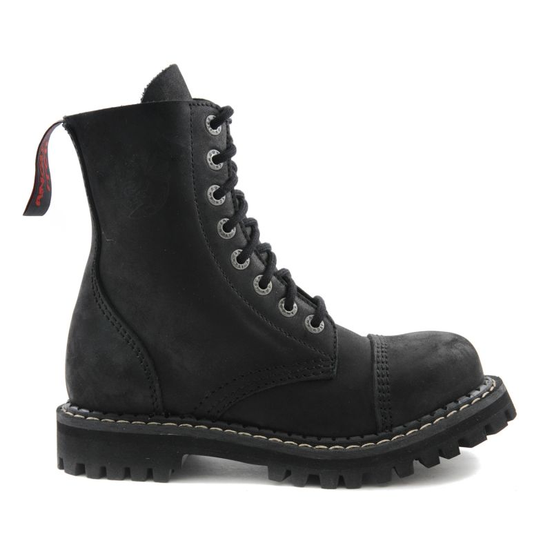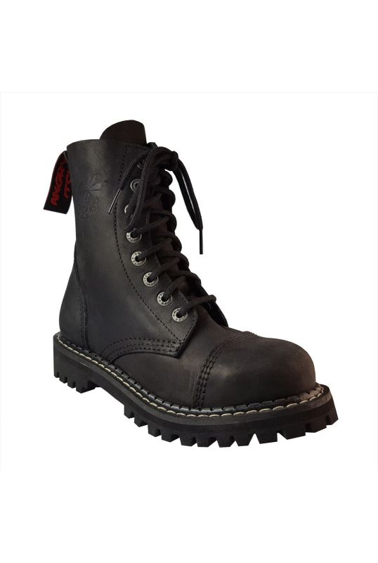 Angry Itch Boots 8 Loch Vintage Leder - Schwarze 8 Loch Gothic Boots im Vintage Look mit Stahlkappe zum Schnüren