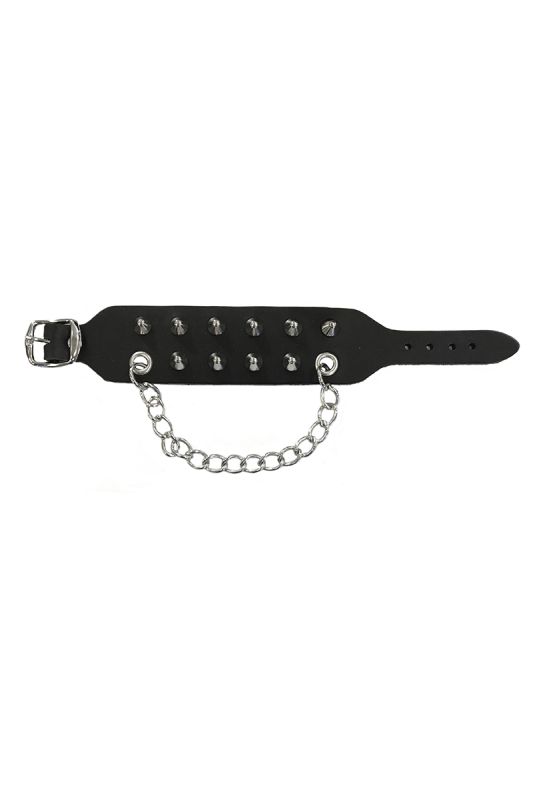 Nietenarmband Spitznieten & Kette aus Kunstleder mit zwei Reihen silberfarbener Spitznieten und Kette