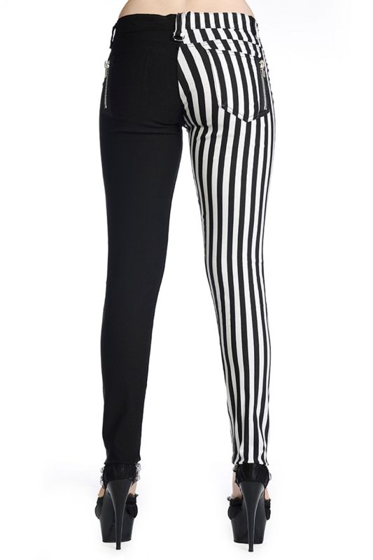 Gothic Hose Skinny Jeans mit Schwarz/Weiß gestreiften Bein im lässigen Punk Style Schwarz