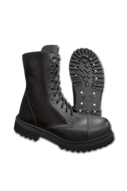 Brandit Phantom Boots 10 Loch Leder - Schwarze 10 Loch Gothic Boots mit Stahlkappe zum Schnüren