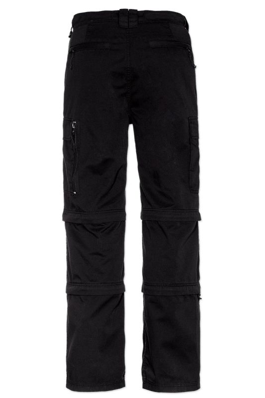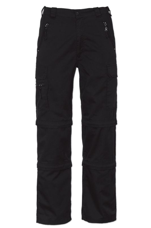 Die schwarze Brandit Cargohose, die so ziemlich alles kann. Die praktische Trekking-Hose stellt Dir drei Längen zur Verfügung, denn mit ihren abtrennbaren Beinen verwandelt sie sich via Reißverschluss binnen Sekunden in eine 3/4 Cargo-Hose oder in Cargo-Shorts. Somit hast Du eigentlich 3 Hosen in einer. Wow! Die schwarze Cargohose ist sehr bequem und die zwei Front-, zwei Gesäß- und zwei Beintaschen bieten Dir genügen Stauraum für alles Mögliche. Die Front- und Gesäßtaschen werden mit Reißverschlüssen geöffnet und die Beintaschen verfügen über praktische Klettverschlüsse. Die Army-Hose hat Gürtelschlaufen. Das robuste Material ist langlebig und hat einen hohen Tragekomfort. Sie ist die perfekte Hose für alle die gern draußen sind und flexibel sein wollen. Jeder Outdoor-Aktivität oder Festivals, sind für die Gothic-Hose kein Problem. Die Hose ist in Übergrößen erhältlich.