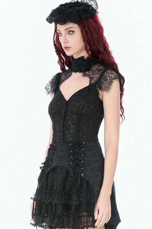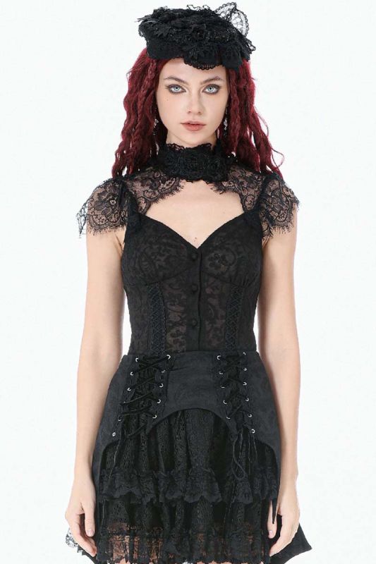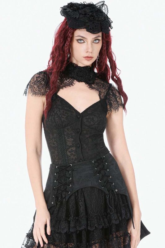 Dark In Love Evelyn Bluse aus transparenter Spitze mit Stehkragen und Kappärmeln