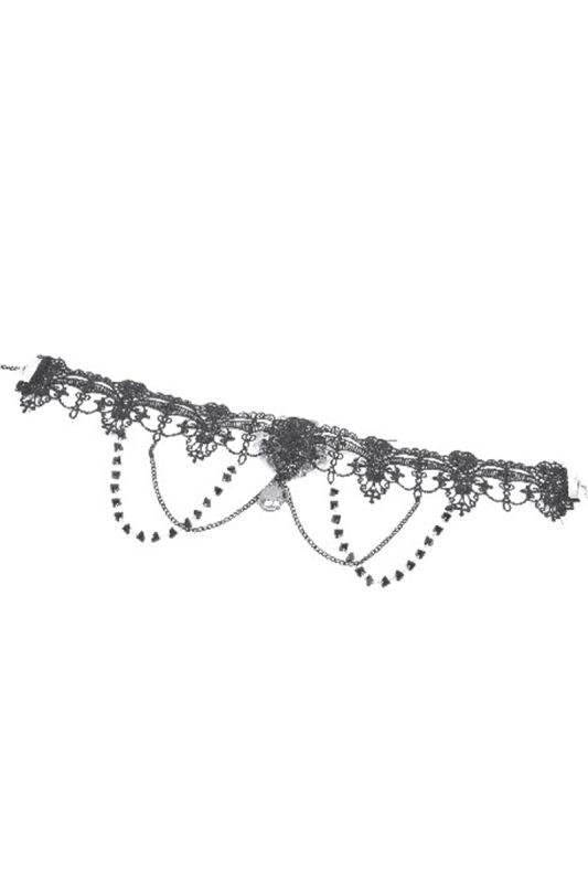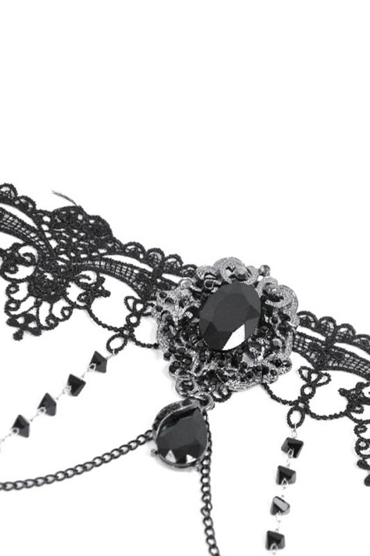Dark In Love Lucrezia Halsband – Viktorianische Spitze und schwarzer Zierstein