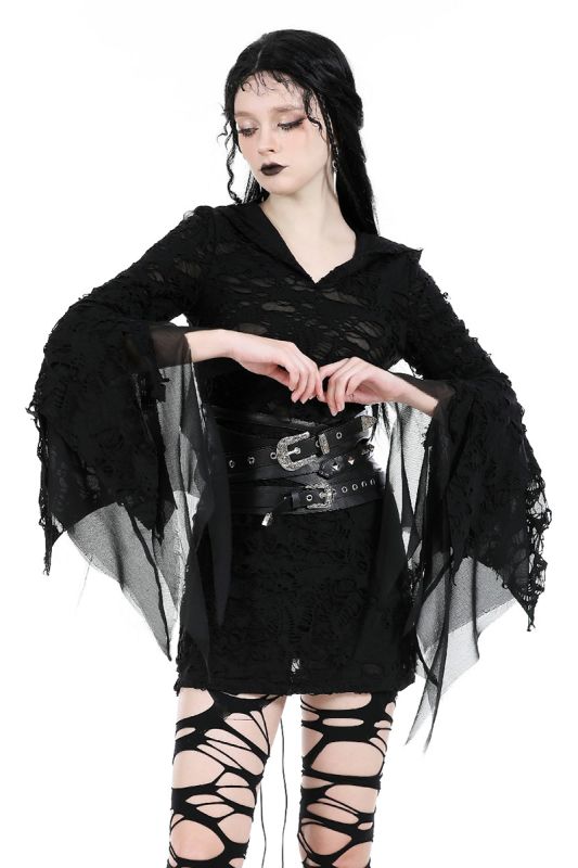 - 3/4 Ärmel mit mehrlagiger, gezackter Schleppe