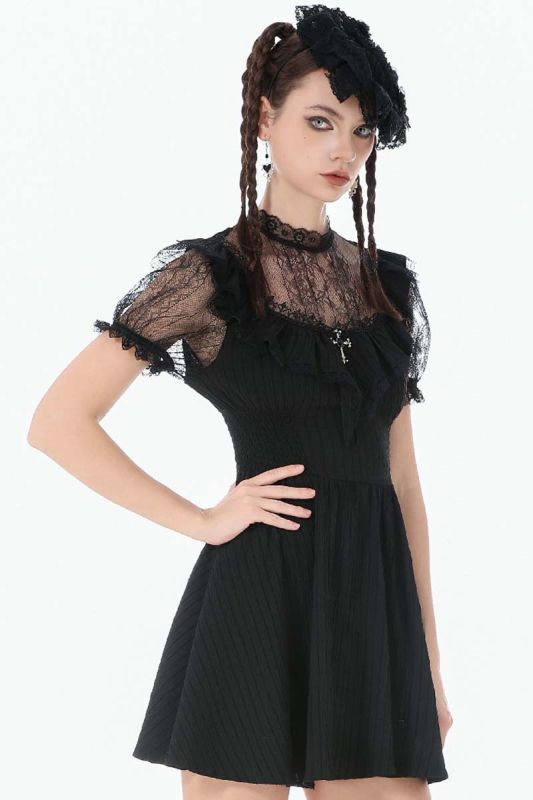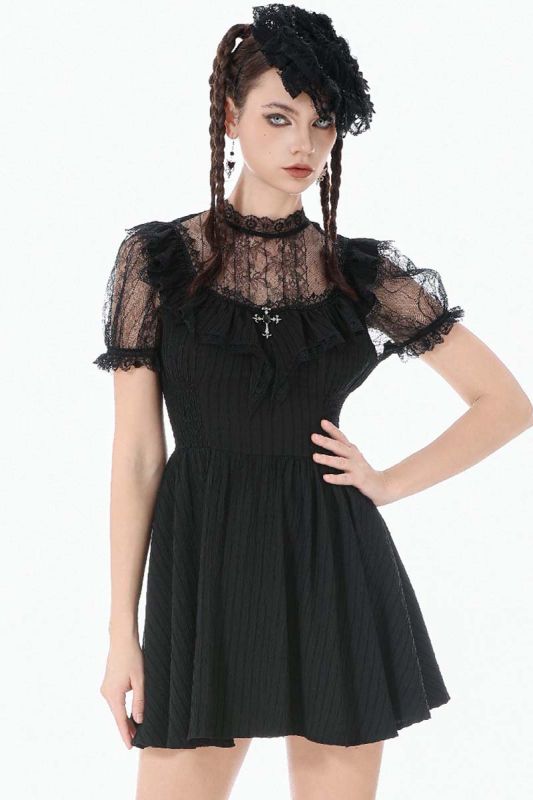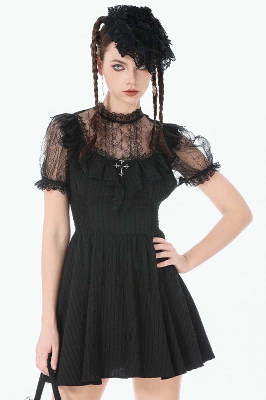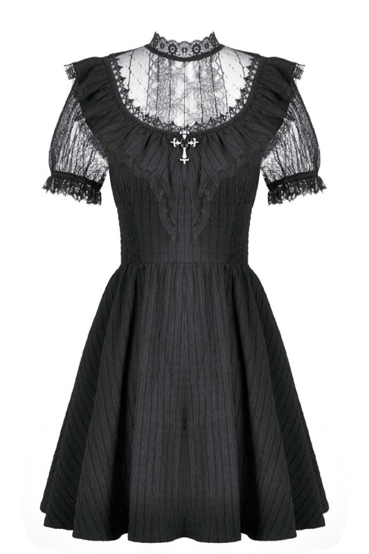 Dark In Love Morgana's Dream Kleid mit viktorianischer Spitze und Kreuzdetail