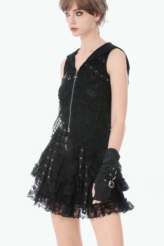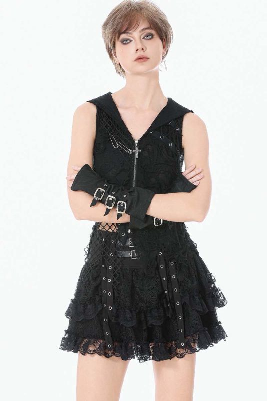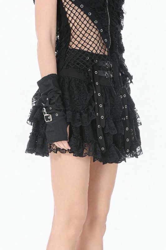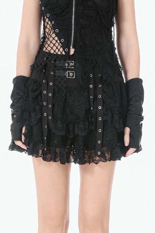 Dark In Love Calista Night Minirock im Dark-Romantic--Stil mit Spitze und Riemendetails