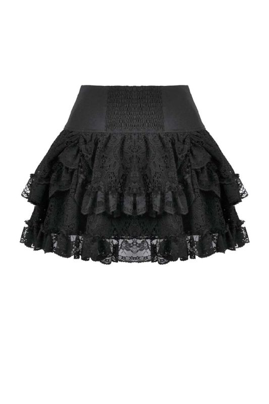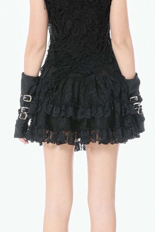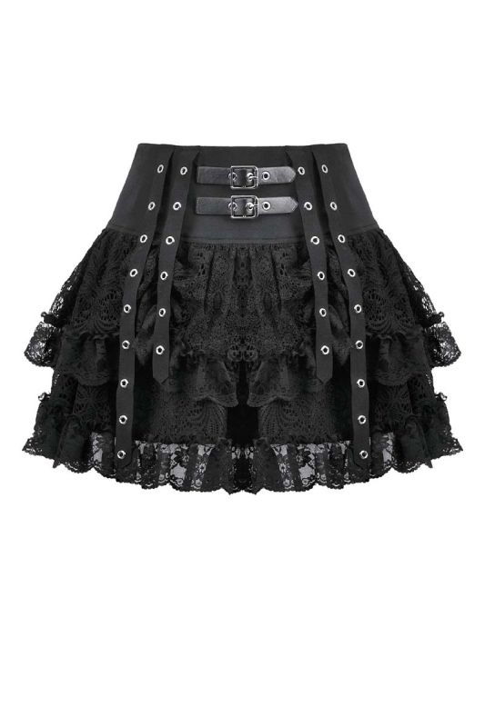 Dieser aufwendig gestaltete Gothic-Rock von Dark In Love vereint verspielte Spitze mit markanten Industrial-Akzenten. Mehrlagige Spitzenvolants sorgen für Volumen und eine lebendige Silhouette, während der hohe Bund die Taille betont und einen sicheren Sitz bietet. Vorderseitige Riemen mit Metallösen und Doppelschnallen setzen einen kontrastreichen, leicht rebellischen Akzent und brechen die romantische Anmutung bewusst auf. Das Ergebnis ist ein ausdrucksstarker Dark-Romantic-Look mit moderner Edge – perfekt für Clubnächte, Festivals oder stilvolle Alltagsoutfits.