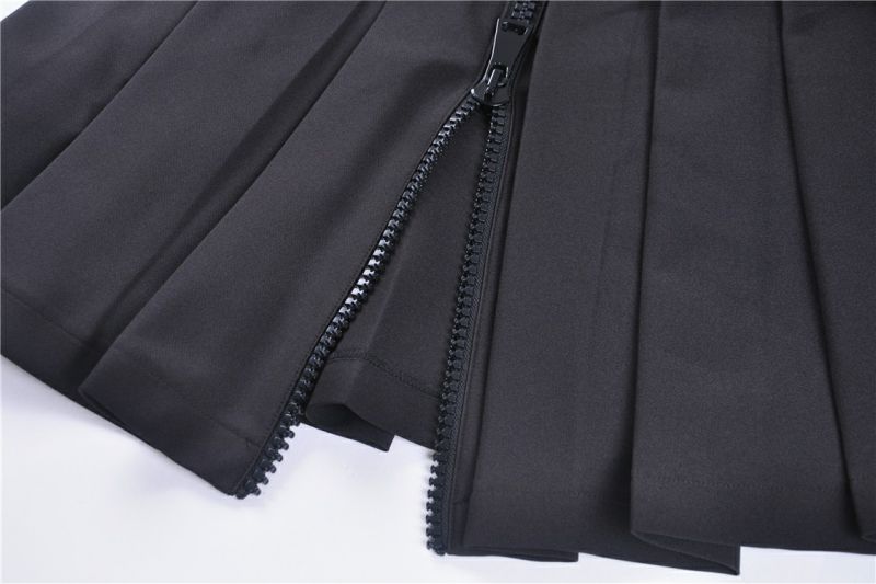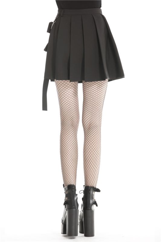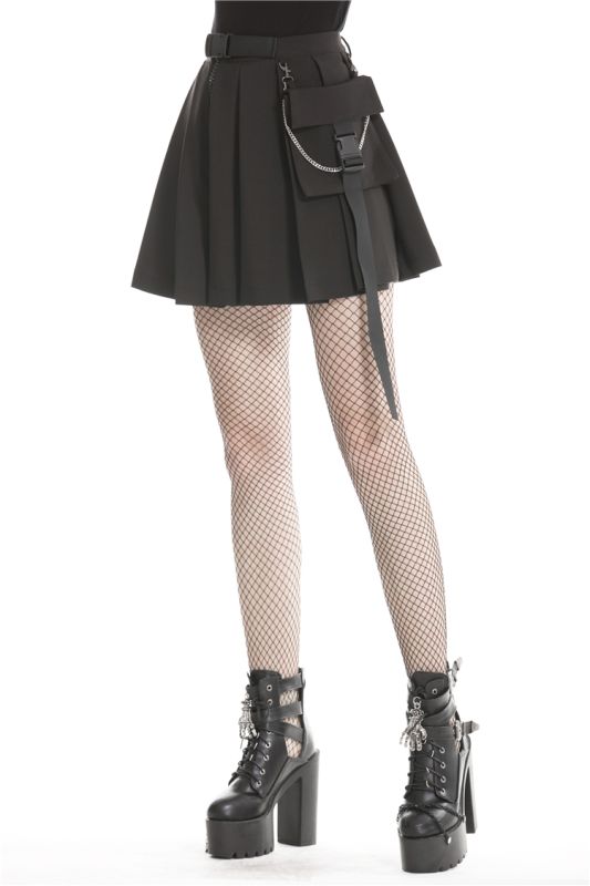 Strahle düstere Dominanz aus in diesem sexy Dark In Love Rock. Denn wer die Dunkelheit sehen kann, der hat auch die Macht über sie. Zeige deine Kräfte im aufregenden Dark in Love "Command" Rock und verdrehe allen die Köpfe. Mit seinem auffälligen Design und klaren Linien wird er zum absoluten Must Have für deine dunkle Garderobe. Der verführerische Gothic Rock besticht mit seinem breiten Falten und ausgefallenen Details im modernen Military Style. Erschaffen ist der schwarze Minirock aus einem robusten Material das jede Party zum höllischen Vergnügen macht. Der Dark In Love Minirock ist in breiten Falten gelegt, die jede Menge Bewegungsfreiheit verstecken. So kannst du dich auf der Tanzfläche richtig austoben und behältst einen perfekt gestylten Look. Seitlich ist eine große Holster Tasche mit schwarzen Karabinern an dem Rock befestigt. Ebenso wir der Gürtel ist auch sie mit einem großen Clipverschluss designt, der perfekt schließt. Eine silberfarbene Kette schenkt dem diabolischen Design eine unglaubliche Tiefe und setzt einen rockigen Akzent. Direkt unter dem Gürtel ist ein breiter, schwarzer Reißverschluss eingearbeitet, der dem Look seinen dominanten Charakter verleiht. Mit seinem sexy High Waist Schnitt zaubert der Gothic Rock nicht nur eine atemberaubende Silhouette, sondern lässt auch deine Beine endlos wirken. Ein echter Styling Traum! Ob mit Crop Top oder Shirt, Creepers oder Plateau Boots und einer sexy Strumpfhose – du wirst die ganze Nacht lang atemberaubend aussehen.