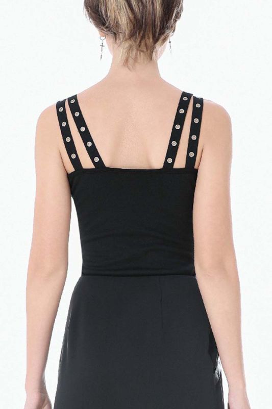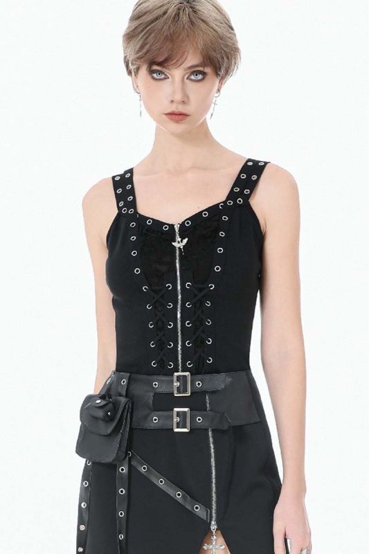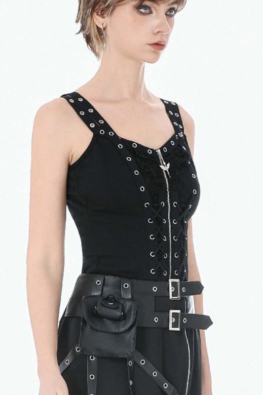 Dark In Love Vexara Top mit Fetzenlook-Element, Ösen und Schnürungen