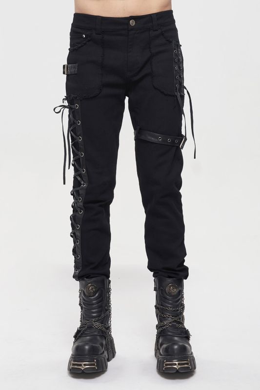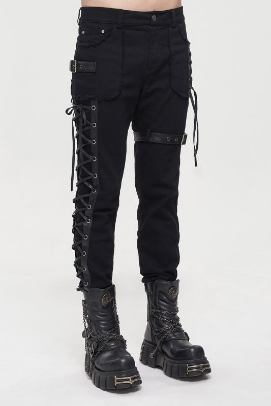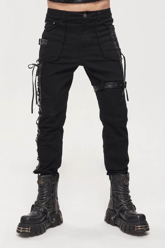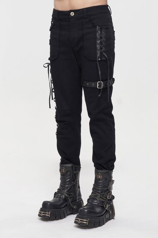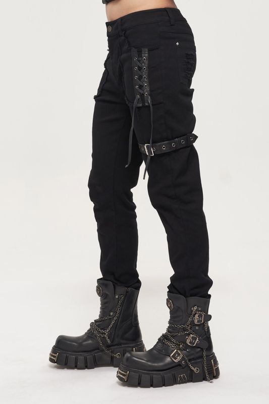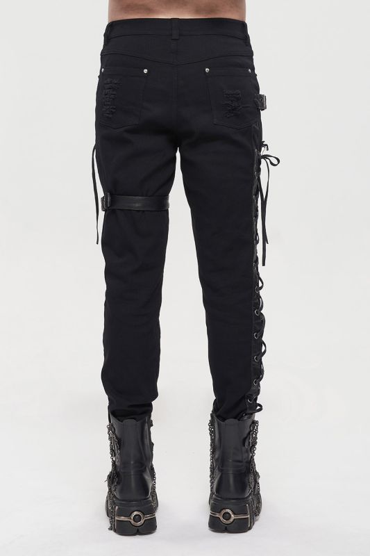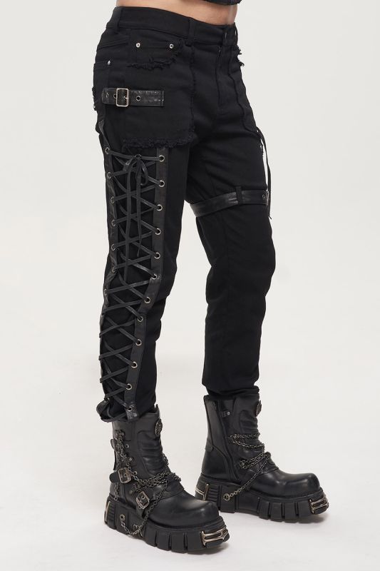 Devil Fashion Hose Ethan im rockigen Used Look mit Kunstlederschnürung und Bondage Riemen