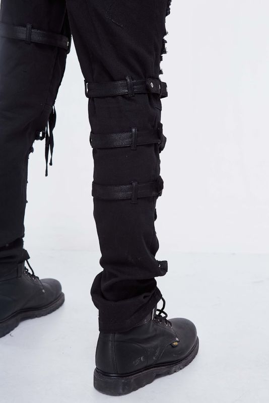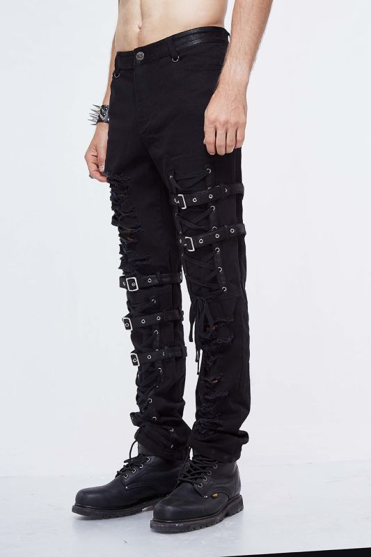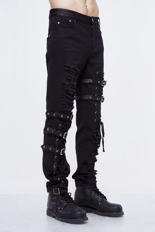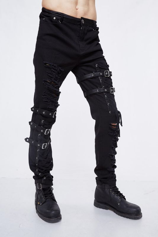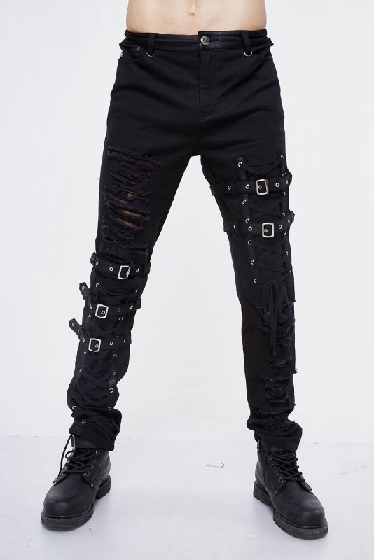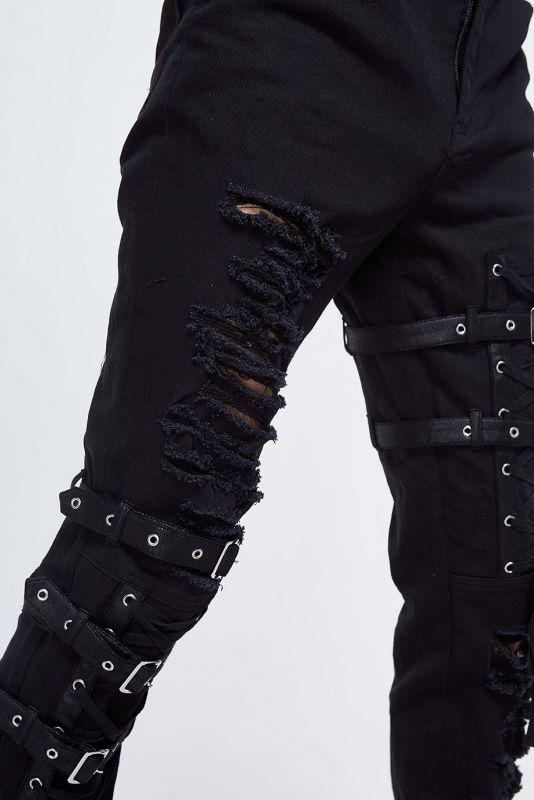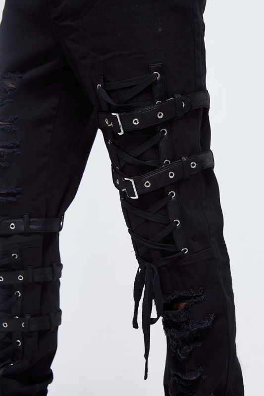 Devil Fashion Eye Of Storm Jeans im rockigen Destroyed Look mit Schnürung und Schnallen