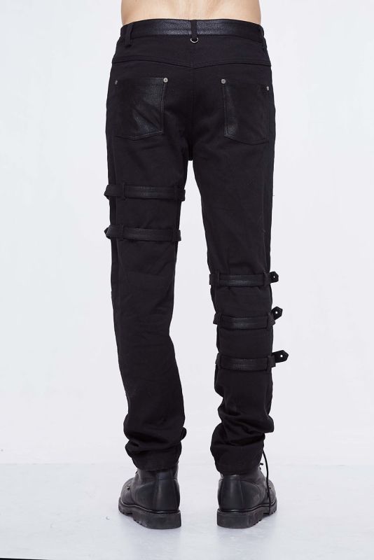 Setze ein Statement für deinen Lifestyle, mit dieser sexy Devil Fashion Jeans. Existiere lautstark und kreiere einen Look, über den sie reden werden. Der rockige destroyed Look harmoniert ideal, mit den auffälligen Details. Die Devil Fashion "Eye Of Storm" Jeans ist aus einem elastischen Material geschaffen und überzeugt mit figurbetonten, bequemen Schnitt. Aufgerissene und zerrissene Highlights dominieren die Vorderseite der Gothic Hose. Sie schaffen einen lässigen Style und machen aus der Gothic Jeans einen tollen Allrounder. Die Zierschnürungen sind asymmetrisch erschaffen und auf Ober- und Unterschenkel verteilt, was das Design noch interessanter macht. Auch die Schnallen folgen diesem Look und sind in Kunstlederoptik beschworen. Silberfarbene D-Ringe und Ösen, sorgen für einen tollen Kontrast. Auch der Bund ist in Kunstlederoptik gezaubert und rundet den Stil harmonisch ab. Ausgestattet mit zwei Fronttaschen, zwei Gesäßtaschen in Kunstlederoptik und Gürtelschlaufen, eignet sie sich ideal für individuelle Outfits. Sieht gut aus zu dominanten Boots oder Plateau Boots, lässigen T-Shirts, Hemden und Nietengürteln.