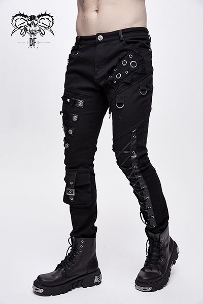 Devil Fashion Quirin Hose mit Cargo Tasche und Schnürung und D-Ringen im rockigen Gothic Style