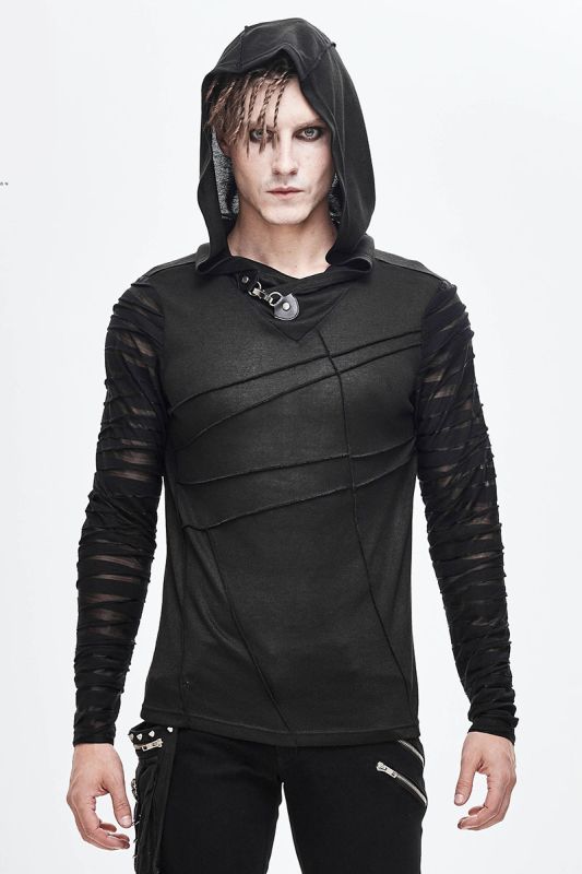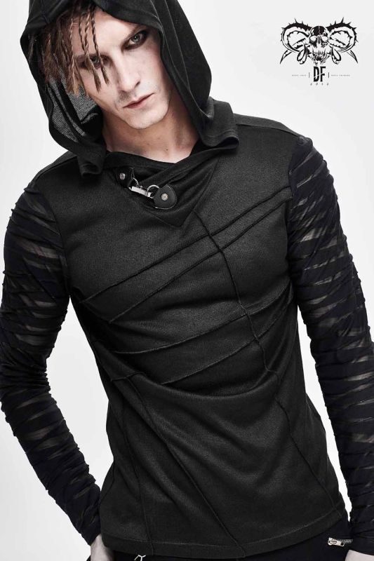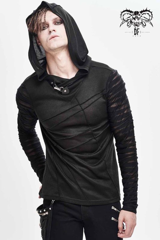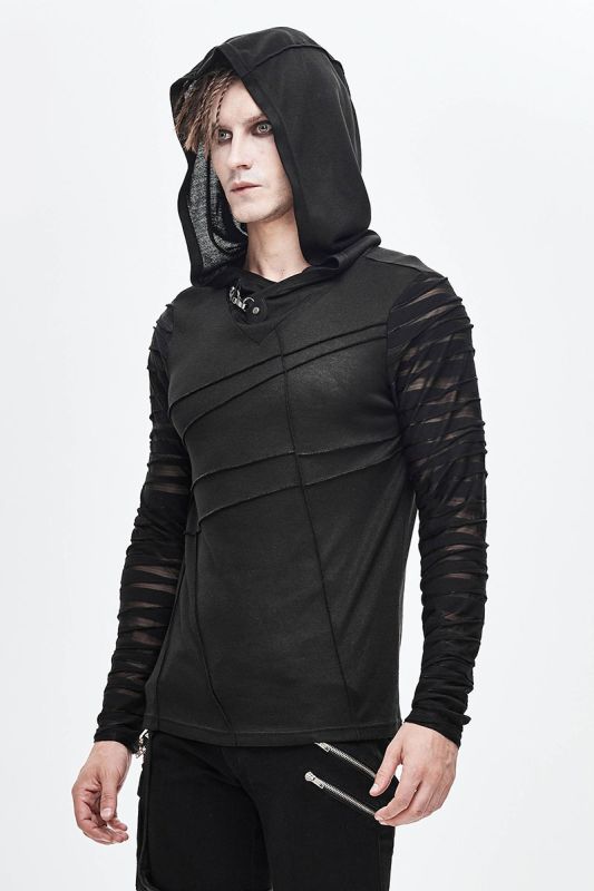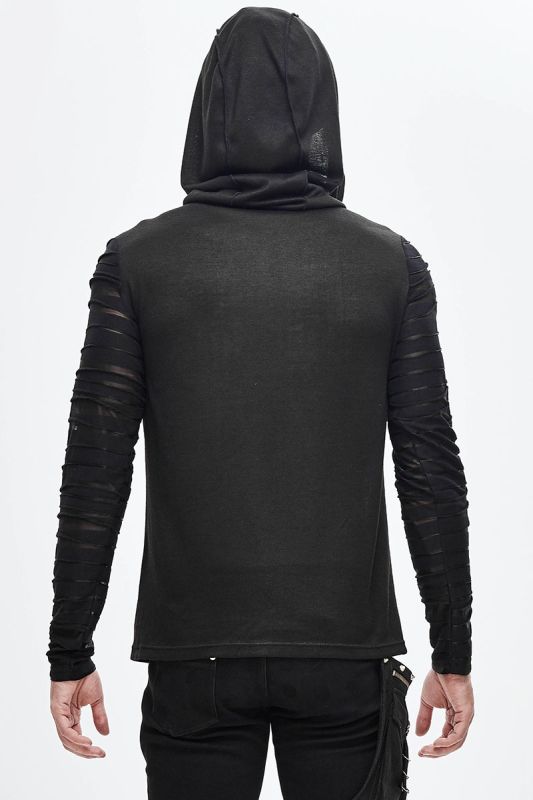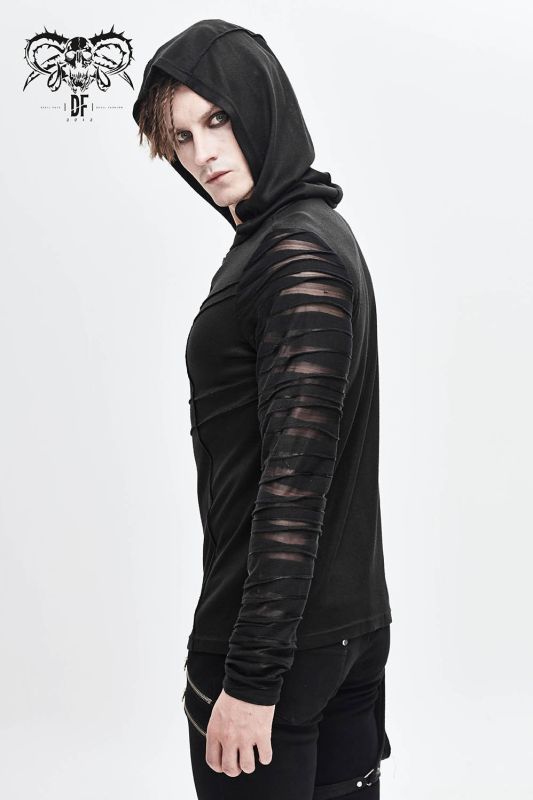 Devil Fashion Munin Longsleeve im Destroyed Look und leicht transparenten Ärmeln mit Ziernähten und Oversized Kapuze