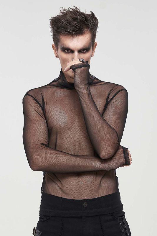 Devil Fashion Longsleeve Safeword aus feinem Netz mit hohem Kragen für einen sexy Look
