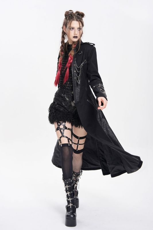 - silberfarbene Ketten auf Vorderseite und Ärmeln