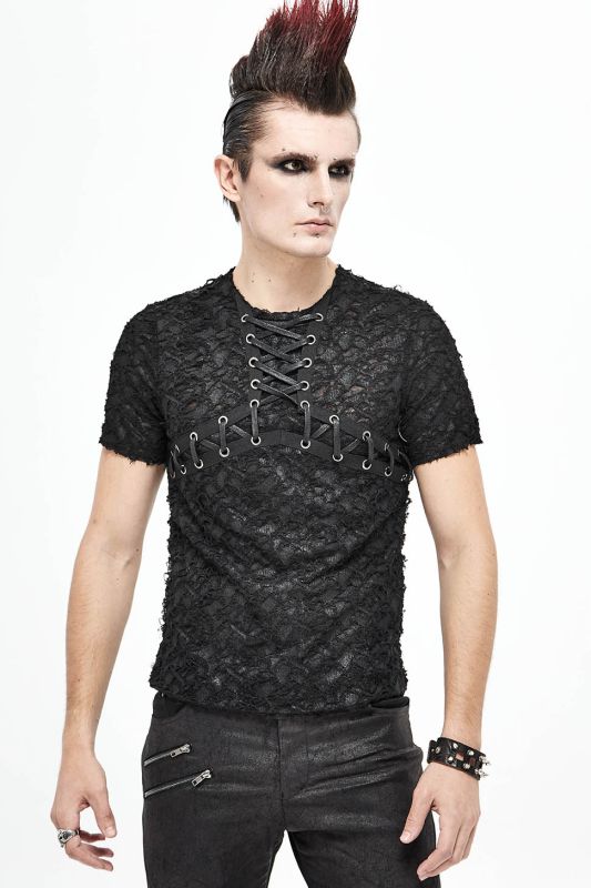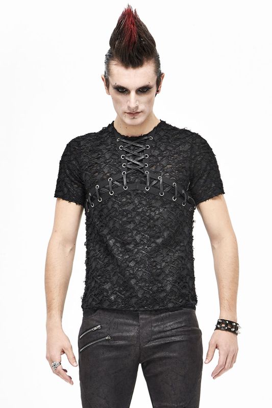Devil Fashion Assassin Shirt im leicht transparentem Used Look mit sexy Schnürung für düstere Looks