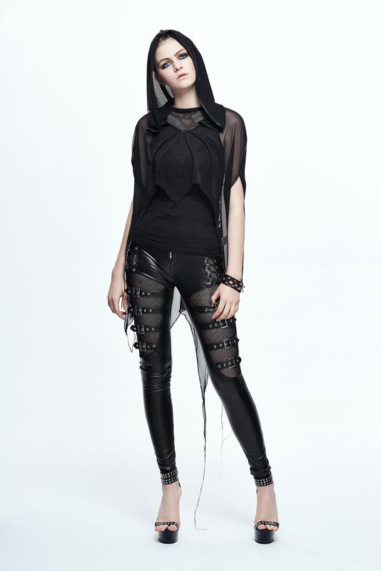 Devil Fashion Creature Of Night Crop Top im transparentem Style mit großer Kapuze im Fledermaus Design