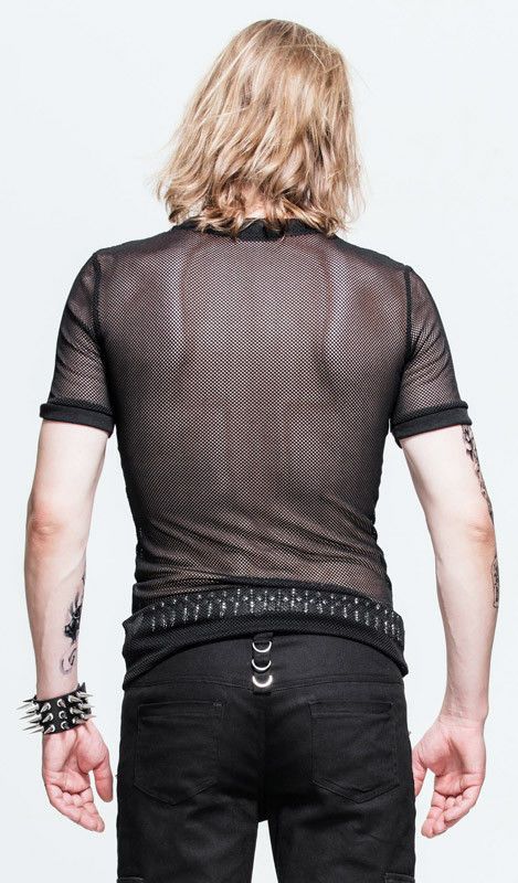Gothic Shirt aus engmaschigem Netz Schwarz