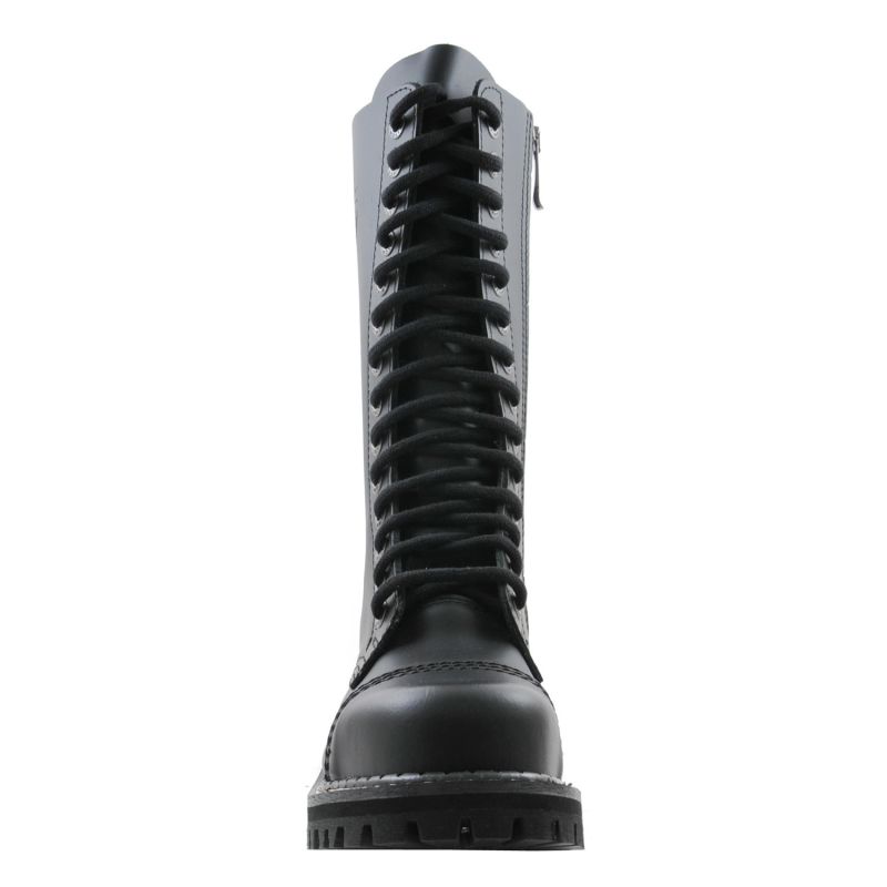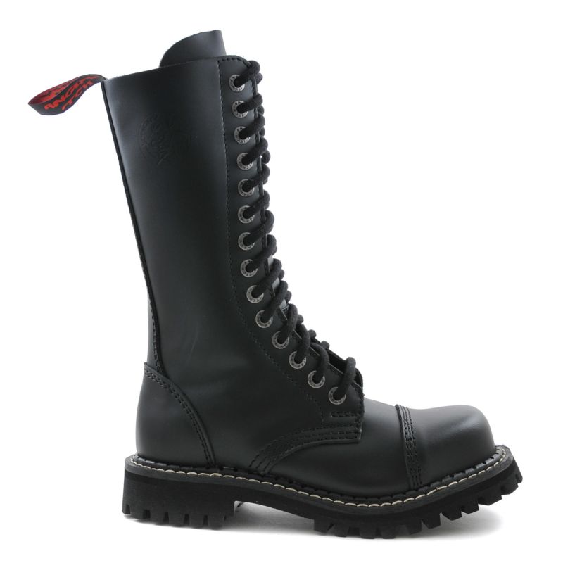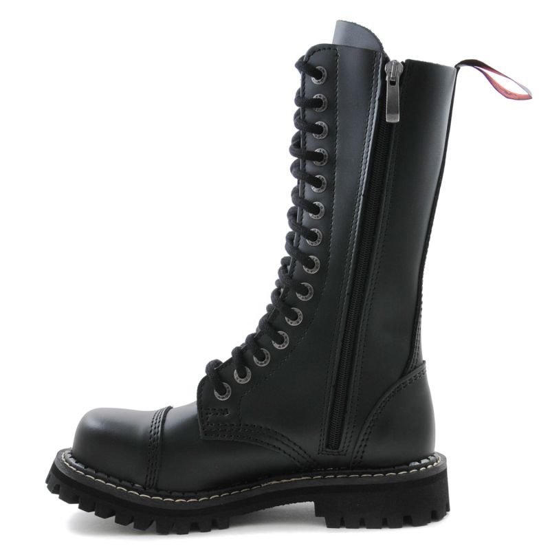 Angry Itch Boots 14 Hole Leather - Black 14 Hole Gothic Boots with Steel Toe Cap and Side Zipper