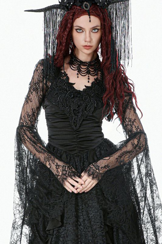 Dark In Love Ravenshade Bolero in lace with dramatic trumpet sleeves