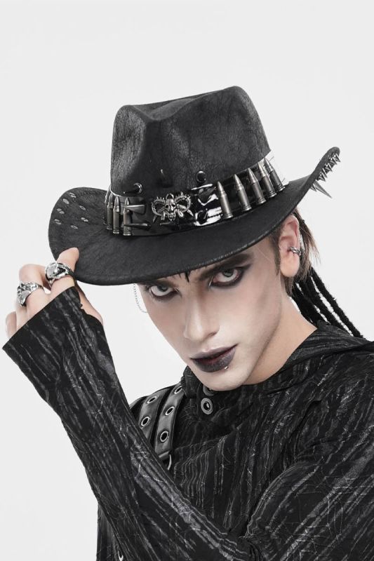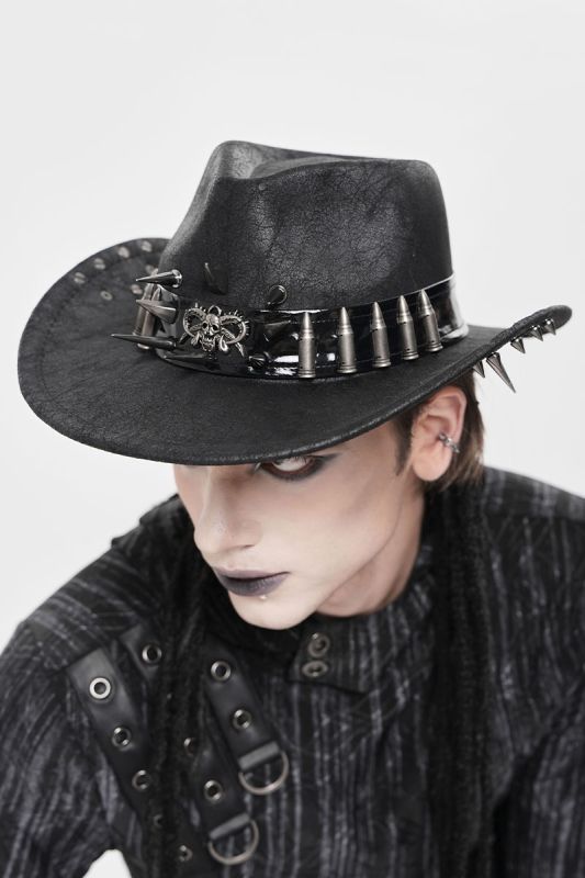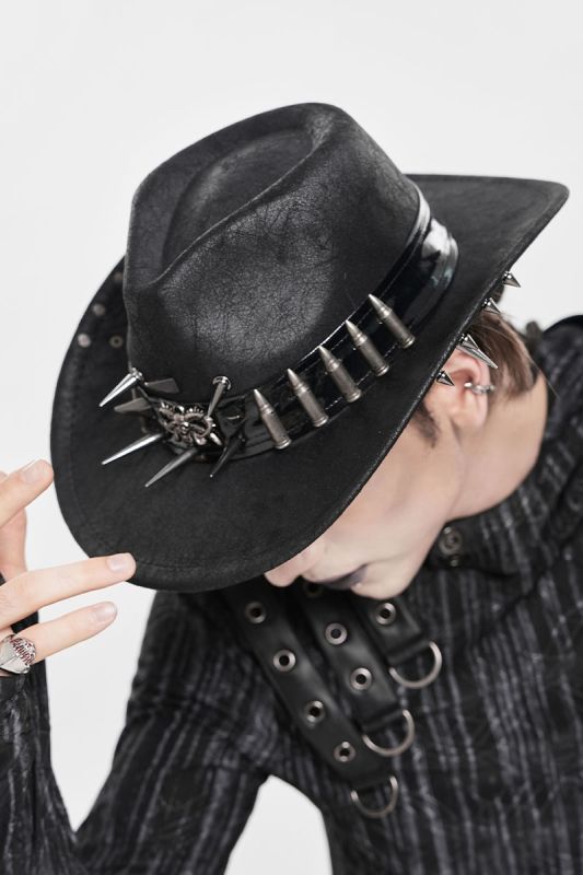• silver-coloured killer rivets of different lengths on the hatband and brim
