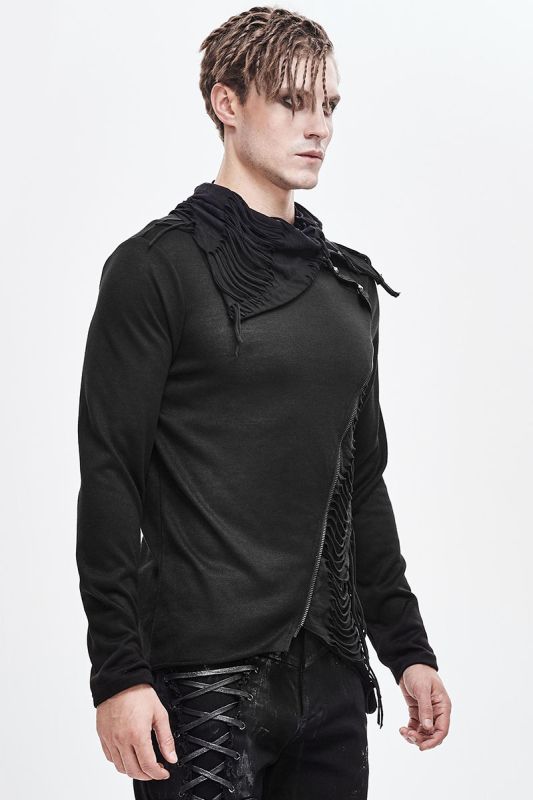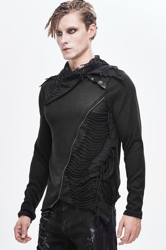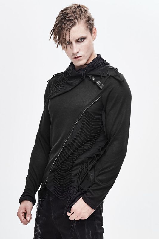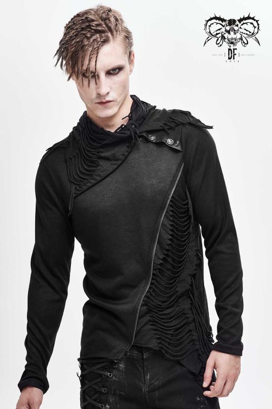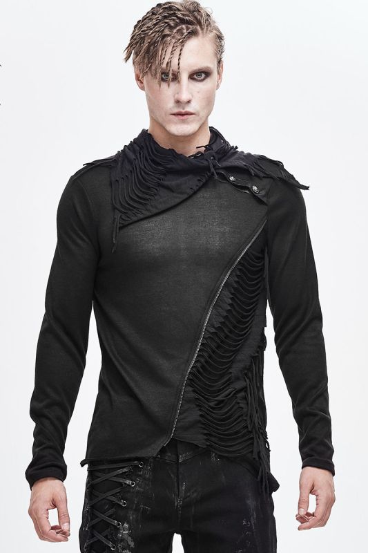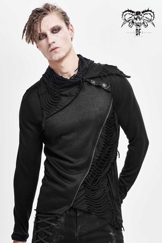 Devil Fashion Floki longsleeve in asymmetrical style with rocky destroyed appliqués and collar