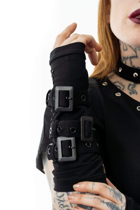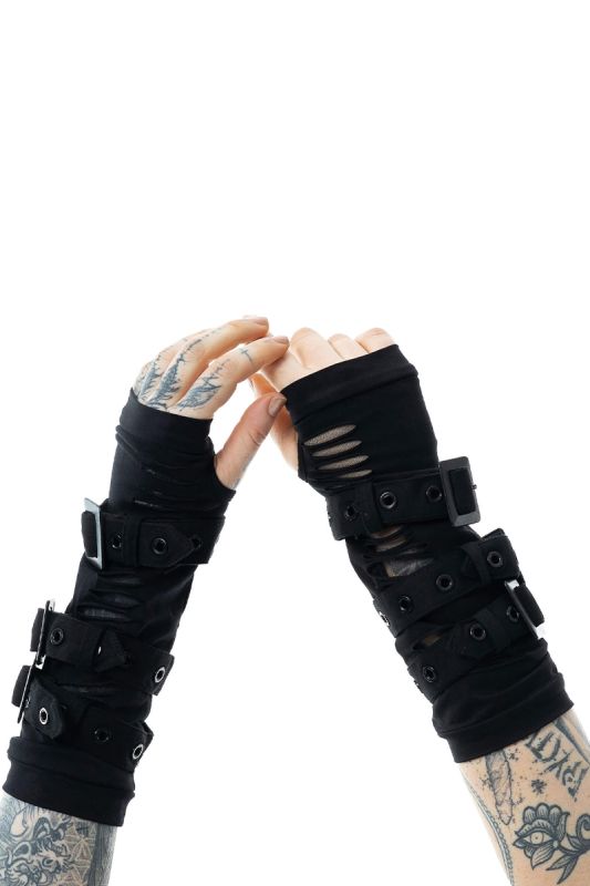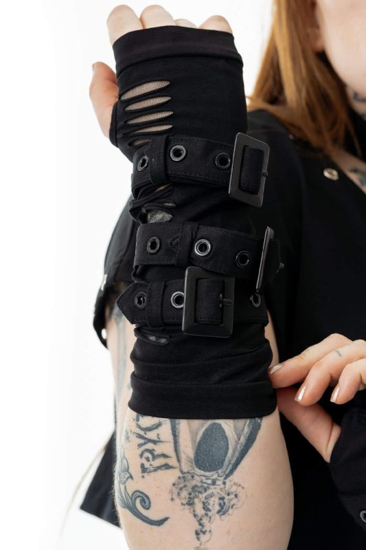 • black gothic arm warmers in an industrial style