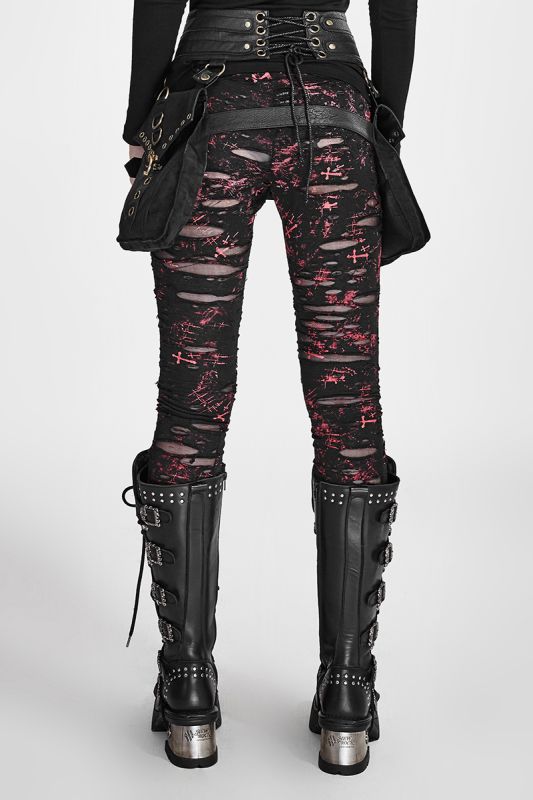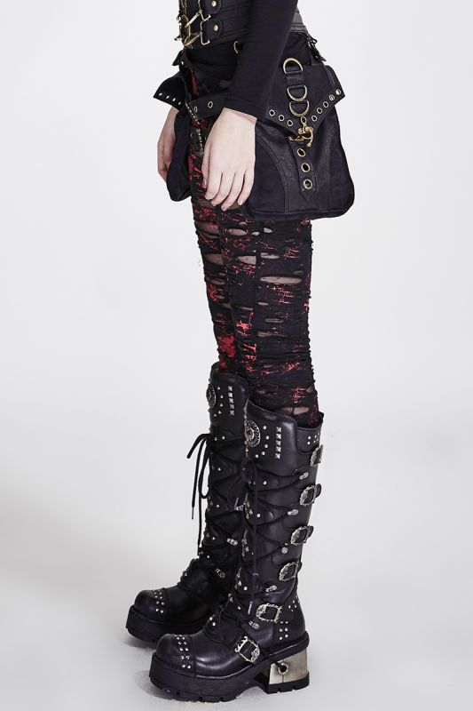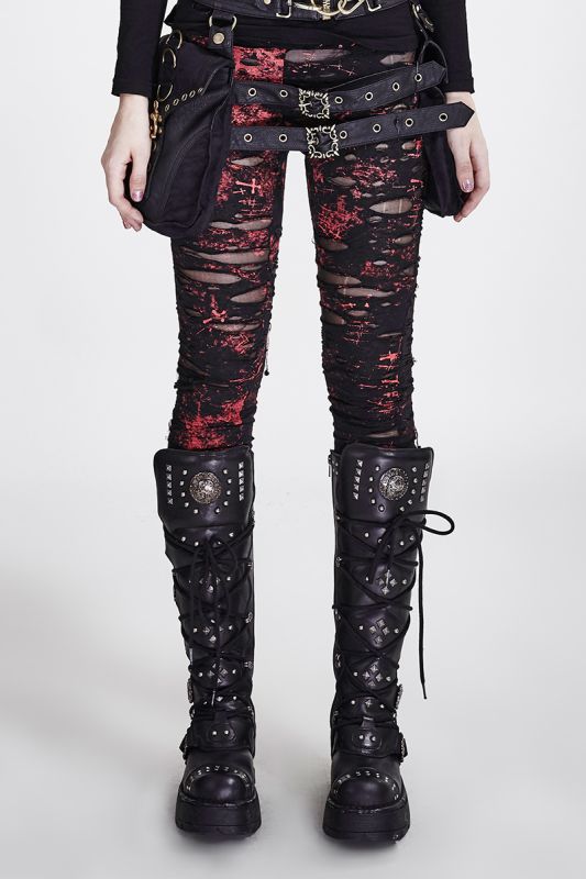 Punk Rave The Earth Trembles Red Leggings with frayed holes in sexy used look