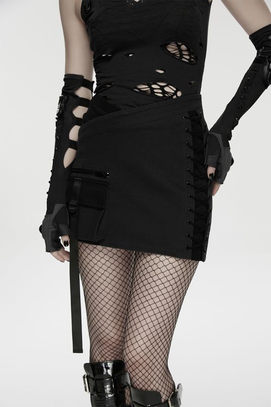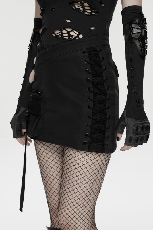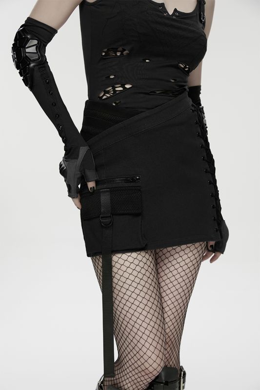 Punk Rave Skirt Black Grid
