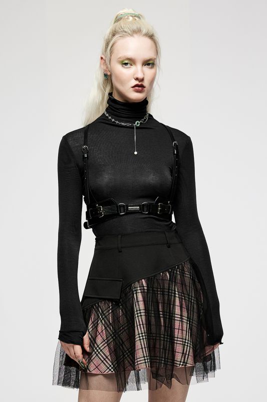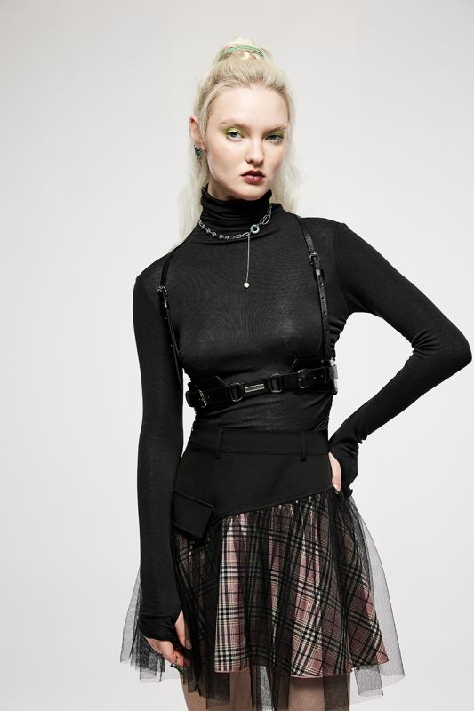 With this sexy Punk Rave Harness you are the ruler on earth and a goddess of hell. Even the devil will turn to you, because this style is not from this world. Show yourself in the black Punk Rave "Dispelled" Harness. It creates a captivating eye-catcher for every outfit and ensures envious glances wherever you go. The gothic harness consists of a wide waist belt and will become your dark companion for every night, because you won't want to take it off again. The narrow, adjustable straps can be individually adapted to your figure and outfit and emphasise your hellishly hot curves in an unexpected way. The wide waist belt made of soft faux leather is super comfortable and doesn't constrict you. Two side buckles provide engaging accents and can always be readjusted. The size-adjustable gothic harness always cuts a fine figure and gives you that pleasant feeling of being enclosed. Whether it's tops or dresses, you'll look stunning. The Punk Rave Harness can be perfectly combined with everything and gives you a sexy-rock look at any time. Silver-coloured rings and the equally silver-coloured Punk Rave logo provide that certain something and a great contrast. What are you waiting for? Don't let yourself be constricted and free your demons!