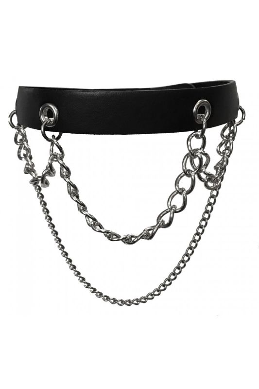Gothic Halsband Aurelia aus Kunstleder mit silberfarbenen Ketten und Ösen im sexy Style
