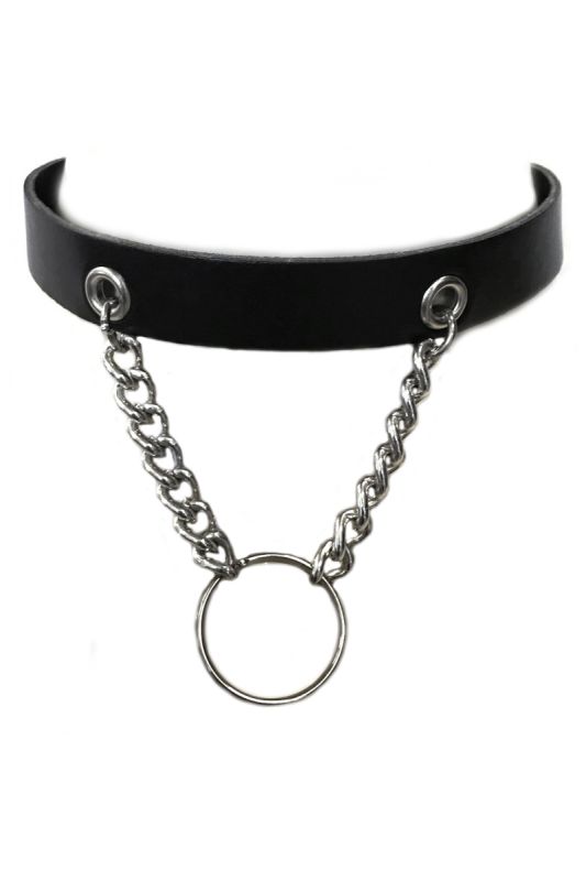 Gothic Halsband Isabella aus Kunstleder mit verführerischem Ring an zwei Ketten im sexy Style