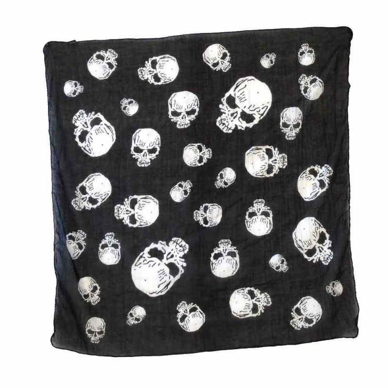 Gothic Halstuch Baumwolltuch mit weißen Totenkopf Motiv für einen düsteren Style