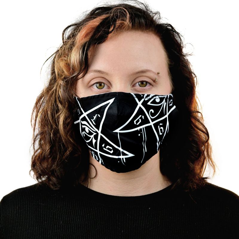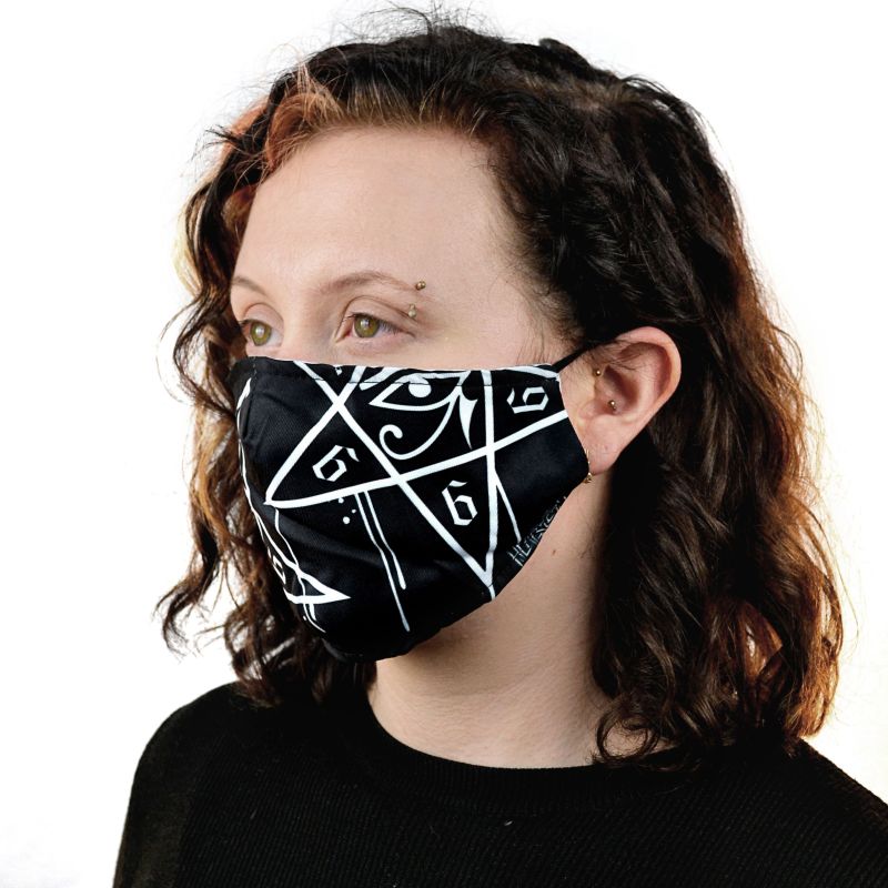 Heartless Dripping Pentagram Maske im düsteren Style mit Pentagramm Print und elastischen Ohrschlaufen