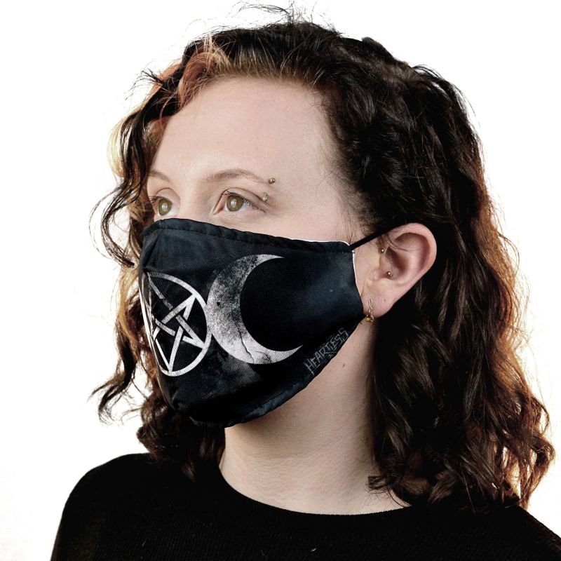 Heartless Moon Pentagram Maske im okkulten Look mit Pentagramm und Mondsichel Print