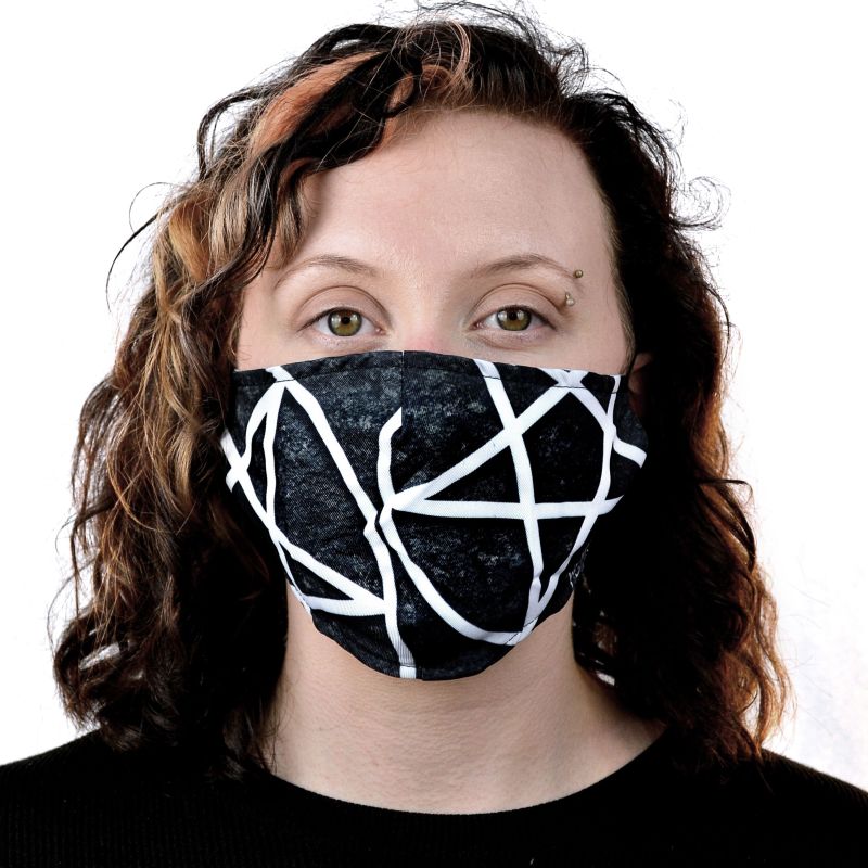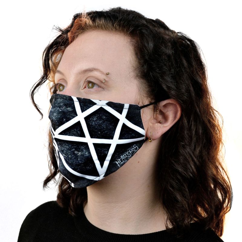 Heartless Pentagram Maske im mystischen Look mit weißen Pentagrammen und elastischen Ohrschlaufen